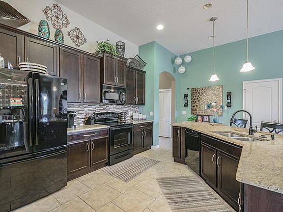 Charming 4 bedroom 3 bath home in desirable Ashton Oaks. LOADS OF UPGRADES!! This home has been loved by the owners. As soon as you enter the home you will be welcomed by the open, bright, an airy floor plan highlighted by volume ceilings. The kitchen boasts 42 inch cabinets and granite counters accented by the attractive backslash. A breakfast area/dinette is right off of the kitchen. The living area is wide open for many configurations of furniture, and built in surround sound is perfect for movie night. Off of the living room is the formal dining area with an elegant tray ceiling. The living and dining area also have a brand new wood/vinyl floor with 50 year warranty. The master bedroom features a delightful bay window, seating area, and tray ceiling with recessed lighting. The master bath will win you over with a garden tub, separate shower stall, and granite dual vanities. Additionally, the his and her closets feature custom shelving. Wait there is more! The garage was extended 4 feet to give you the storage space you need. Built in pest control system, built in shelves in the laundry area, and marble window sills are just some of the other upgrades. Lastly, the outdoor area and fenced in yard is perfect for the little ones or entertaining. Have your morning coffee on the extended lanai while enjoying a view of the water. All of this with no CDD, access to all major highways, and all of the shopping and restaurants you could want in bustling Wesley Chapel. Dont miss this one!!