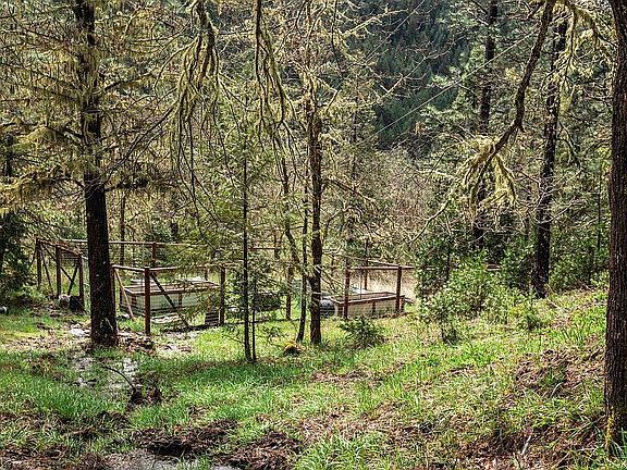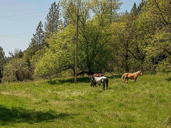 The pasture is 6 acres fenced at bottom of property with a large barn with power and water. There are also some fruit trees and a fenced garden. Wonderful horse property with amazing grass.