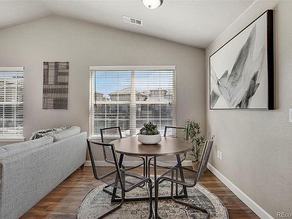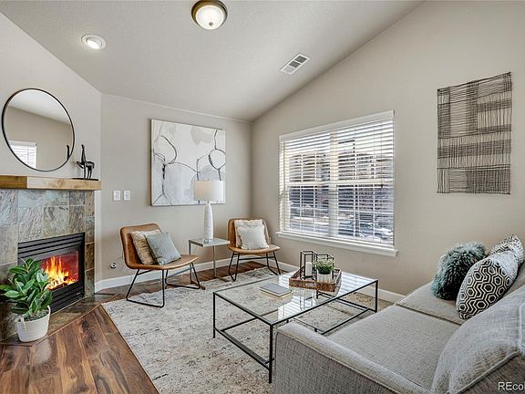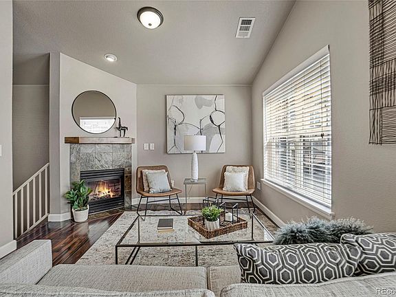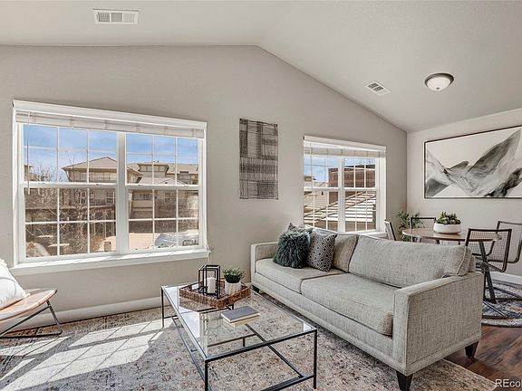 Don't miss this rare opportunity to own a coveted end-unit in Town Center Terrace with a convenient attached garage and not one, but two private outdoor spaces! This spacious two bedroom, two bath home has been beautifully updated throughout. The main living area boasts an open floor plan, cozy gas fireplace, vaulted ceilings, wood-like laminate floors, and plenty of natural light. The modern kitchen shines with stainless steel appliances, granite countertops, tile floors, and ample wood cabinetry. The large primary suite offers a private full bath with dual sinks, custom built-ins, and a generous walk-in closet. The second bedroom is perfect for guests or a home office. It has custom built-in shelving and a Murphy bed plus a huge slider with access to the second floor balcony. The washer and dryer in the main floor laundry closet are included. Enjoy the best of indoor-outdoor living with a massive patio on the first floor overlooking serene green space and the community pool, perfect for entertaining or evening relaxation. Located in the highly sought-after Cherry Creek School District, this home offers easy access to the Dayton Light Rail Station (a block away!), major highways, and the Denver Tech Center (DTC), making your commute a breeze. This quiet, well-maintained community includes amazing amenities such as a pool, hot tub, community clubhouse, and fitness center. Schedule your private tour today!