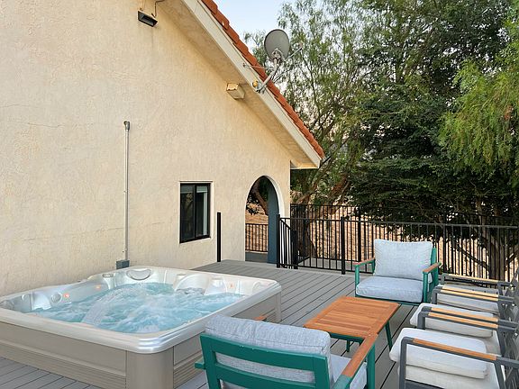 1- 3 months rental only. No long term lease required. Fully furnished Ranch style house with a Spa located on De Portola Wine Trail in the heart of Temecula Wine Country on 10 10-acre lot. - walking distance to Leoness Cellar, Oak Mountain Winery, and Mogan Estate Weddings - Gentle slope upward, creating the most amazing views from the hilltop estate - spacious living space, outdoor BBQ, and entertaining space, large living room, and a loft for a small event or conference. - 5 Bedrooms, 4 Baths, - Master bedroom with 2 Queen bed, private bathroom - bedroom #2 with 2 full beds, - bedroom #3 with 2 Twin bunk beds, - bedroom #4 with 2 Twin bunk beds, - bedroom #5 with 2 Queen bed Owner pays for water, gardening. No smoking in property, parking on driveway and yard only. Garage is used for owners storage space. Tenant to keep the spa clean.