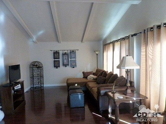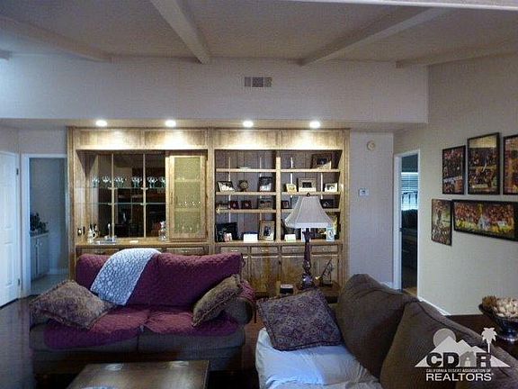 This 1987 home has 1940 square feet of living space featuring a Living Room, Dining Room, Kitchen Large Family Room with a Fireplace, Utility Room with a Desk, Master Suite, and Guest Quarters. The floor is laminated throughout except for the carpeted bedrooms. The walls are dry walled and the front and back windows are dual paned. The kitchen has granite counter tops and open into the breakfast eating area and the Family Room. The Master Suite off the Family Room has a large walk in closet. The utility room is between the two bedrooms to create privacy when you have guests. The Air Conditioner was installed in 2013. The cozy front and side patio give you the outdoor space to enjoy desert living. The Homeowner Dues are just $260.00 per month which includes your Golf, Cable, and Trash. Come Take a Tour to Appreciate This Beautiful Home!