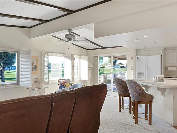 New Reduced Price!!!! Buyer is ready to sell!!!This home features a larger lot on the Golf Course with spectacular views of the Course and the Mountains. Side by Side parking leads you into a spacious private patio. This all-electric home is located just around the corners from the Clubhouse with convenient access to golf, swimming, restaurant, hot tubs, and the exercise room! The unique open concept Living Room and Kitchen Area designed to take advantage the golf course view. The dining room is separate which adjoins to the master suite, guest bedroom and bathroom and the oversized utility room with lots of storage. The master bath features a new walk-in shower and also has double sinks. The primary bedroom has a walk-in closet. You can enjoy the patio through the dining area or through the living/kitchen areas which leads out to the shed to park your own golf cart. This home is priced to sell, and the furniture is negotiable. Call for an appointment!
