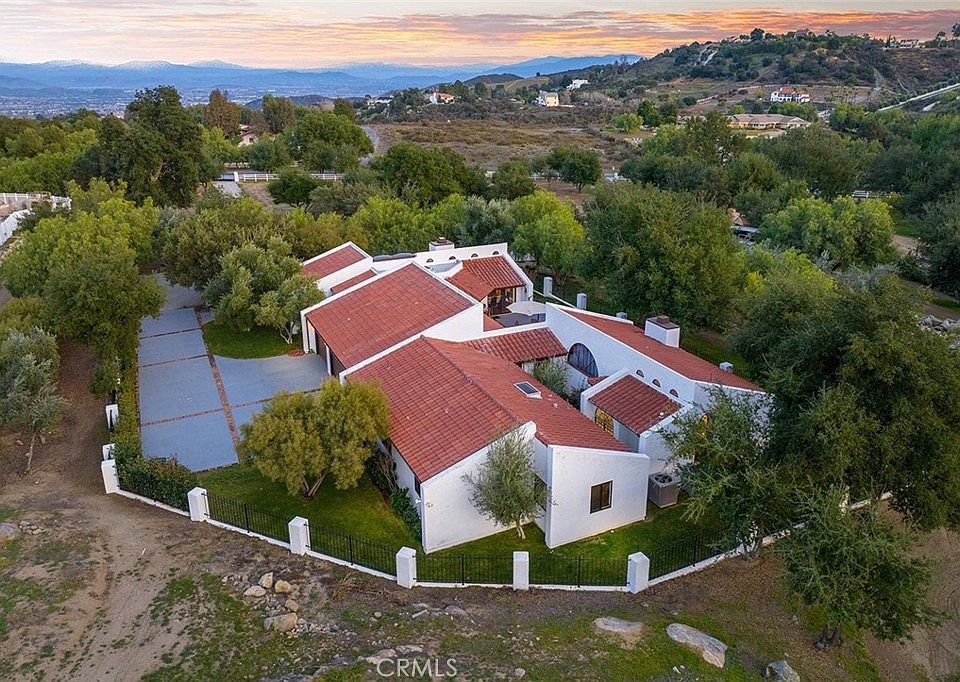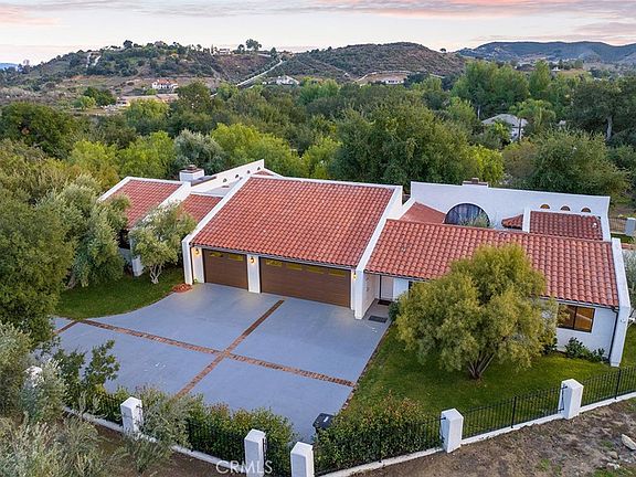 SINGLE-STORY ESTATE ON FLAT USABLE 5 ACRES in a highly desired area of LA CRESTA! This 4-bedroom mediterranean-style home is thoughtfully tucked within ancient oak trees and occasional boulder outcroppings, offering a fantastic close-in location within the ranch community of La Cresta. From here, you can get to shopping and schools within 15 minutes, while feeling worlds away on your very private sprawling estate. Enjoy the usable land as-is or take advantage of the flat parcel to create an epic equestrian horse property, vineyard and/or orchard. Build it out with an ADU, barn, workshop, RV garage, and have a massive compound for the entire family. The European-influenced home sits beautifully off the street with a massive front yard and is appointed with authentic terracotta flooring, charming arches, vaulted ceilings, an updated chefs’ kitchen, tons of windows and a spacious private courtyard in the heart of the home. Parking will never be a problem with the double-gated entrances and abundance of usable space, all of which is accessible by decomposed granite roads throughout the entire fully fenced property. The vibe here is nothing short of Mediterranean Magic! *****Santa Rosa Plateau: 5-acre minimum parcels, star-filled skies & peace – just minutes to schools, restaurants, hospitals, grocery stores, 15 Fwy & the famous Temecula Wine Country. Enjoy community activities & miles of trails via the private trail system & 1000s of acres of Ecological Reserve…All less than 1.5 hours from LA, SD, OC, Palm Springs & Big Bear. Discover the country, yet convenient, lifestyle of La Cresta & Tenaja!