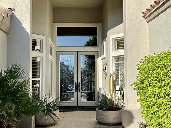 Regent Estate Model with expansive views of golf course, lake and mountains. Master suite has door to back patio, jetted tub, double vanities, walk-in shower, heated towel rail, 2 walk-in closets and an attached room that could be a sewing/art studio, office or workout room. Both guest suites are on opposite side of home, each with its own bathroom. Guest powder room is conveniently located off the front hall. Formal living room has views and fireplace across from the Formal dining room. Great room is open to the breakfast area and kitchen (all with those great views). Remodeled Kitchen with built-ins, bun warmer, a walk-in pantry and easy access to rear yard. Full laundry room with built-ins and utility sink. Generously sized two car garage and a golf cart garage. Newer AC units and mini split for garage. 24 solar panels with inverters and Tesla wall battery +IID hook up. Solar window screens available for outside windows. Back yard and patio has alumawood covering, water feature and above ground spa. Sun City Palm Desert is a gated,55+ senior community with 2 golf courses,2 Fitness centers, Tennis, pickle ball, billiards, bocci ball, swimming pools, yoga/dance studio, game rooms, banquet rooms, postal center, restaurants, many clubs and activities and lots more. Furnishings available for purchase outside of escrow.
