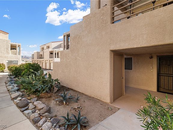 Location, Location Location! Right in front of the pool. This absolutely gorgeous 2 bedroom 2 bath ground floor luxurious Laughlin Bay Village condominium is one of a kind! Feels like you're dreaming as this one is a dream come true! This TOTALLY REMODELED unit has a HUGE living room with fireplace, all tiled floors, newer appliances. Huge Master bedroom suite features a new tiled walk-in shower and two vessel sinks! Must see to appreciate the beauty of this fine property. Why settle for any less than the best. This unit includes its own laundry room that will accomodate your appliances and leads to the attached garage! Come see one of the 4 community pools and bbq areas. Lush landscaping, close to the River! Hurry before its gone.