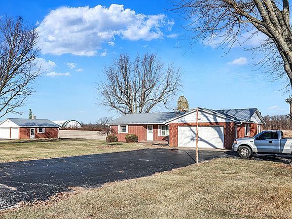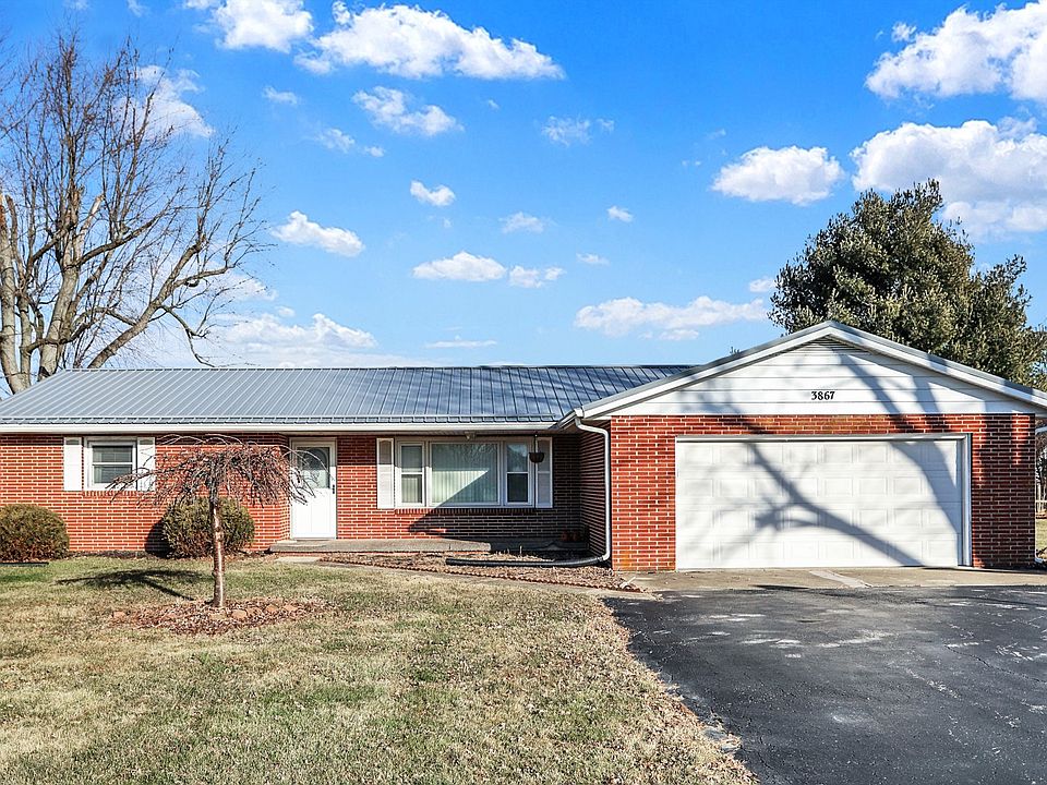 Must see 3-bedroom Brick ranch located on 1.65 acres! 5 garage spaces -2 car attached garage (598 sq.ft.) and 3 car heated detached garage (900 sq.ft.). Great storage or could be used as a workshop. Numerous updates include: New metal roof, new gutters & leaf guard, paved driveways, newer garage lift master, newer flooring throughout, newer steel front door, newer tilt-in cleanable windows, newer refrigerator and dishwasher. and ceiling fans. Outdoor patio overlooks additional acreage-perfect for a large garden. Easy access to 74 -15 min., Avon / Brownsburg 30 min., and downtown Indy in 52 minutes. Country living with low taxes & convenient location!