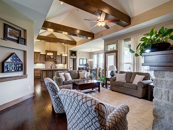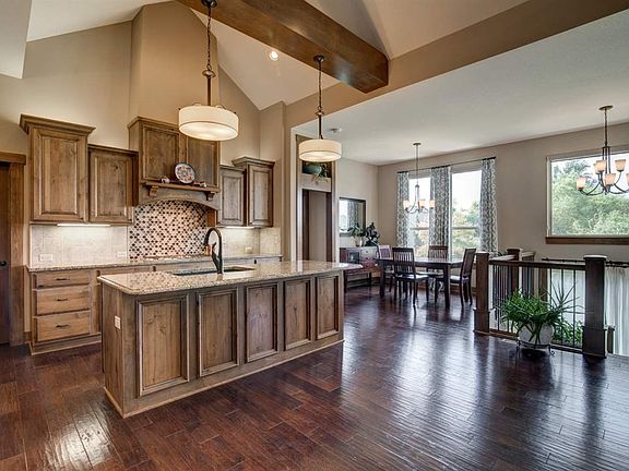 Motivated Sellers moving out of state! Luxurious Watercress custom built home on the water plus a Great Location! Sitting just north of the Maize South School Complex, the kids will just be minutes away. No details have been overlooked in this lovely 5 BR 3 BA over-sized 3 Car garage Ranch. Right away, you will notice the professional landscaping and grand front entry providing great curb appeal. The large open concept living space in the Great Room with an abundance of natural light, stunning lake views and elegant stone front Fireplace will suit everyone. Massive beams in the vaulted ceiling plus striking hardwood floors add to the atmosphere. Custom cabinets, granite countertops, tile backsplash, over & under counter lighting, walk-in pantry, large island with eating bar, externally vented range hood are featured in the State of the Art Kitchen. All Kitchen appliances stay with the home. French doors open into the cozy sitting room/office off the Living Room, perfect for reading, watching TV or would be a great office space. With the split Bedroom plan, the Master Suite is truly private--and again has those awesome lake views and a tray ceiling. The inviting Master Bath won't disappoint with double sinks, granite countertops, tile floor and tiled walk-in shower. The large Master Walk-in closet is conveniently connected to the laundry/mudroom. Completing the main level are 2 additional BRs and the lovely Hall Bath. Do you love to entertain? Then the upscale finished view-out basement sporting crown molding, another beautiful gas FP and wet bar with granite countertops, tile floors with space for a bar fridge is made just for you. Entertaining can continue on the covered back deck and open patio overlooking the lake. The desired Watercress neighborhood provides walking paths, playground and swimming pool. Have you noticed how many restaurants are now open in the 37th & Maize area, just a few blocks from this impressive home? Very close to Maize Rd shopping district plus is just a short distance from major highways. You must see this impeccable home to discover all it has to offer!!-- Call to schedule your private showing today!!