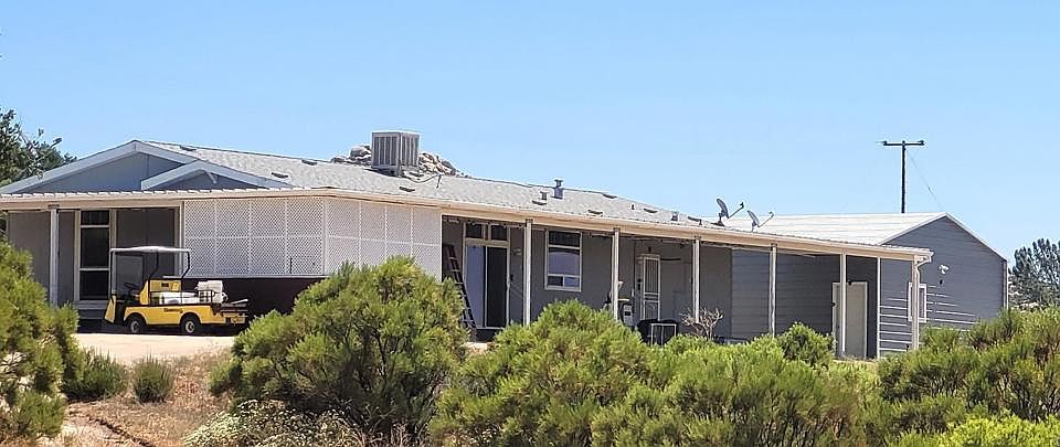 This 2011 home in rural San Diego County is perfect for a family that enjoys the great outdoors with views and desert toys, horses, livestock, or gardening. This 3 bedroom, 2 bath manufactured home sits on 40 oak studded acres. Enjoy the sunset under a covered wrap around concrete porch and outdoor kitchen with stunning views into Mexico. The porch has plenty of room to install a hot tub with that view! The 3 car garage is immaculate and attached to the house by the covered porch. All major appliances convey with the property. And for those that enjoy working on cars or desert toys, you can enjoy a 1200 sq. ft. work shop that has full electricity. The workshop can easily fit 4-5 vehicles. New kitchen floor, new water heater and new toilets in both bathrooms were just updated this month. The home has a standby Honeywell house generator with a Smart Switch for automatic power during those SDG&E rolling blackouts. The outdoor kitchen has 2 BBQ's, a sink and small refrigerator, along with plenty of storage and bar seating. 3 large shipping containers for storage, a flatbed utility trailer and an EZ-Go utility cart convey with the property. There are 2 seasonal creeks that run through the property as well that offer a seasonal feel. Home is sold AS-IS and is turn key. Call today to schedule a viewing!