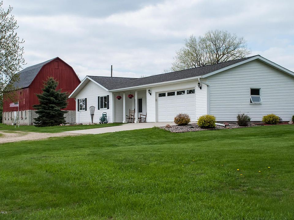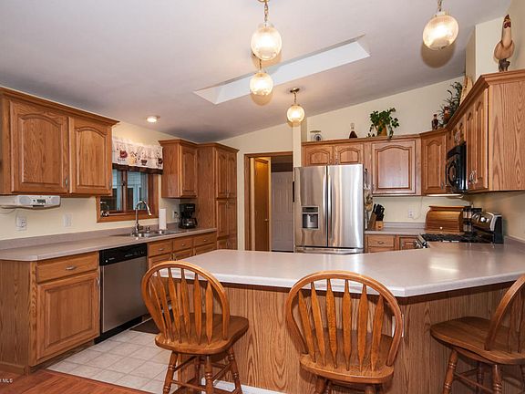Serene setting on dead end road on over 6 acres with refurbished barn & plenty of room to expand! Open layout & complete main floor living w/nearly 4,000 total sq. ft. Vaulted ceilings, laminate hardwood floors, stainless steel appliances, snack bar, main floor laundry room, breezeway with pellet stove, and 3 bdrms on main, including master with private bath and walk-in closet.
