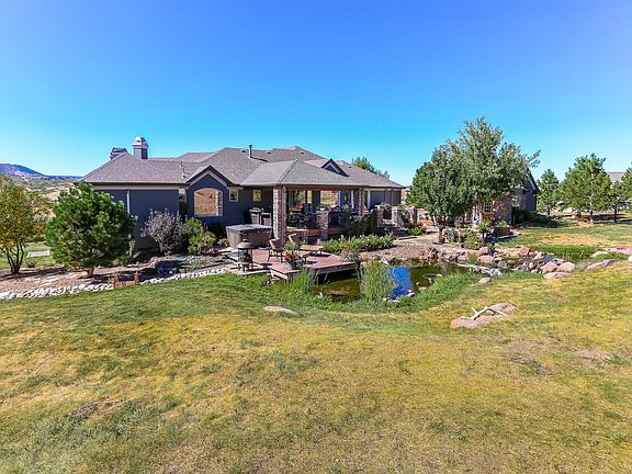 Serenity awaits in this Spectacular Updated home with mountain & sunset views from the all new front decks. Newly renovated backyard outdoor space that includes 4 delightful waterfalls with a Koi pond surrounded by professional landscaping. New covered patio with outdoor kitchen and 8 person hot tub. Attached 3 car garage and newly constructed 2.5 car garage with new wood doors that showcase rich detail. New wood floors on upper level and new carpeting on lower level with new paint throughout. Gourmet Kitchen with Viking Appliances. Professionally Installed Home Theater with 3D Projector, wine cellar and bar right off of the family room, just right for entertaining. Exercise room with steam sauna and heated floors. Two storage rooms with ample space. Smart Features through out the home. All new Exterior Stucco and Concrete Extended Driveway. Front and Back Sprinkler System keeps the professional landscaping well manicured. Central Vac System on both levels. Too many Upgrades and Updated Features to list. Come see for yourself just how impressive this 5 Acre home is.