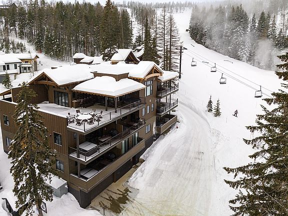 Luxury meets convenience at this stunning ski-in/ski-out condo located next to the chair 3 slopes at Whitefish Mountain Resort. With 2 bedrooms, 2.5 bathrooms, and a spacious 1,452 sq. ft. of living space, this condo is the perfect mountain retreat that comfortably sleeps 6. Enjoy the ease of heated parking in the garage, complete with a 13' x 6' owner storage space and a hidden owner closet in the primary bedroom behind a sliding bookcase. Step outside onto the covered deck to soak in the private hot tub while taking in breathtaking views of the ski slopes. Inside, stay comfortable year-round with central air conditioning. The building amenities include an elevator, fitness center, and ski locker room, providing everything you need for the ultimate mountain getaway. Offered fully furnished, turn-key. Currently being rented, all booked rental dates beyond closing are to be honored by the Buyer. Call Stephanie Skinner, 406-261-8430, or your real estate professional.