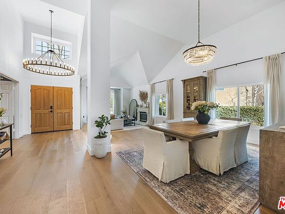 Welcome to this beautifully remodeled single-story home located in the highly sought-after community of Moorpark. As you step inside, you'll be greeted by an inviting and serene open floor plan that's bathed in natural light, showcasing high ceilings, an abundance of windows, and exquisite designer touches throughout. The home features brand-new Garrison designer engineered hardwood floors, giving it a fresh and modern feel. The spacious living room, complete with a cozy fireplace, flows seamlessly into the formal dining area, creating the perfect space for entertaining guests. The gourmet kitchen has been completely remodeled with brand-new Thermador appliances, including a 6-burner range, and beautiful quartz countertops that add a touch of luxury. A large butler's pantry with a sink, skylight, and ample storage is sure to delight any chef. The kitchen flows effortlessly into the cozy family room, which features its own fireplace and a comfortable dining nook. Recessed lighting has been added throughout, complimented by stunning new chandeliers in the living and dining areas, adding a touch of elegance. The spacious primary suite offers high ceilings, an abundance of windows, and a private entrance to the tranquil backyard. The en-suite bathroom includes dual vanities, a large soaking tub, a walk-in shower, and a spacious walk-in closet. Three additional guest bedrooms provide plenty of space for family or guests, with one currently being used as a playroom. This home offers the ultimate in privacy, with no homes directly behind it, ensuring a peaceful and serene environment. The well-manicured yard includes a lovely patio with an overhang, perfect for outdoor dining and relaxation.The interior and exterior has been freshly painted. Located on a quiet cul-de-sac, this home provides a retreat-like atmosphere, offering both luxury and comfort in a highly sought-after location.