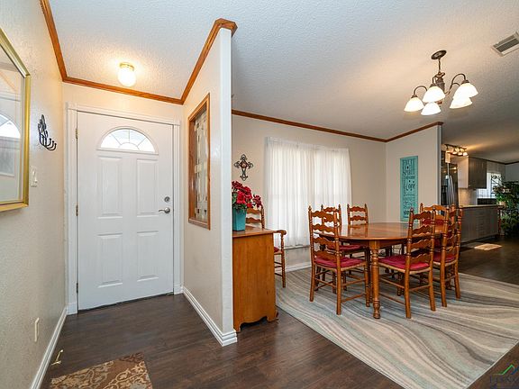 Welcome to 3868 Page Rd, Longview, TX, where a 2128 sq ft updated manufactured home has surprising extras and sits on almost 13 acres in the Hallsville School District. This charming home has a recently renovated kitchen, featuring sleek IKEA cabinets, stainless steel appliances, granite countertops, and a stylish subway tile backsplash. Pergo flooring and the recent addition of the display cabinet near the fireplace adds to updates. You'll enjoy the oversized primary bedroom which is an impressive 28 feet wide as well as the double dressing areas -- it's like having 2 separate bathrooms inside the master retreat! Fantastic Location just minutes from shopping, restaurants, churches and medical offices in Longview while also only minutes to Hallsville, yet West Elementary is just 1 mile away. With an insulated shop with extra shed storage, a house that sits off the road, several acres of woods and plenty of pasture, this home is the perfect country living setup. Covered parking for lots of vehicles, even oversized ones like an RV, and an impressive covered back porch with a storage area add to the list of extras. Impressively, the roof being tied into the structure's frame with concreted posts adds to the stability of the home. This place is a great find -- let's get you scheduled to see it today! $375,000