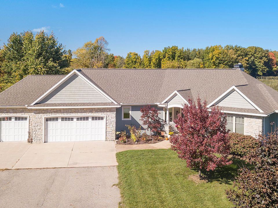 Scenic Country Setting! need more Living Space this home as it. 3383 sq. feet of finished living space and all kinds of storage space. 6.45 Acres, 4 Bedrooms, 3 1/2 baths comes with this Walk out Ranch located in the Northern Ridge Area surrounded by beauty and wildlife. Hardwood Maple floors throughout, Kitchen with appliances, Center Island, snack bar, pantry and wine cooler. Master en suite is spacious and overlooks the backyard. Home Office space, Main floor laundry, and open living area with fireplace and 4 Season Porch. Finished lower level features a family room with wet bar and 4th Bedroom. Large Storage areas with a Workshop and outside entrance. Enjoy outdoor living with patio, multi level decks and above ground pool. Home Warranty too. Come take a tour.