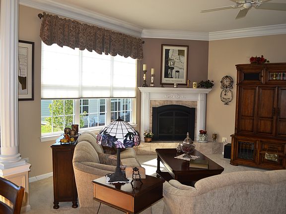 Fabulous space, great location, you must see it to really appreciate the ambiance and setting. Designed for 55+ adults with dramatic open areas and plenty of windows and light. Beautiful, custom direct-vent fireplace in great room. Only 5 minutes from major shopping.1,840 square feet, 2 bedrooms, 2 bathrooms.Large, mostly-finished basement. Perfect for family activities or storage.Oak hardwood floors and neutral carpeting throughout.Granite counter tops with maple cabinets and recessed lighting in kitchen
