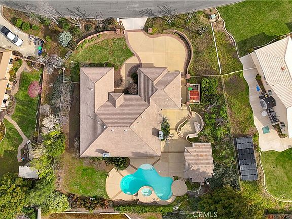 This beautiful Hidden Meadows one story home with a detached guest house may be just what you've been waiting for! The main home features 4 bedrooms, 3 full baths and the studio guest house featuring a galley kitchen, 3/4 bath and built in cabinetry is perfect for a pool house, mother in law quarters or teen hang out. Gorgeous laminate wood flooring flows through the entry, formal living and dining rooms, the primary and another bedroom used as an office. Exquisite ceramic tile throughout kitchen and family room. Custom Plantation style shutters throughout the home. There are lovely gas fireplaces with ceramic logs in the family room and main bedroom. Entertaining family and friends is a delight in the gourmet kitchen with breakfast nook, generous cabinets, counter tops and storage. The back yard oasis beacons you out to a sparkling swimming pool, spa, outdoor kitchen and room for Bocce Ball or all the kids playsets. Stunning mountain vistas will take your breath away~ ~ Bring the boat and quads as there's plenty of room to store them in the pull through 3rd garage! Your forever home is waiting for YOU!