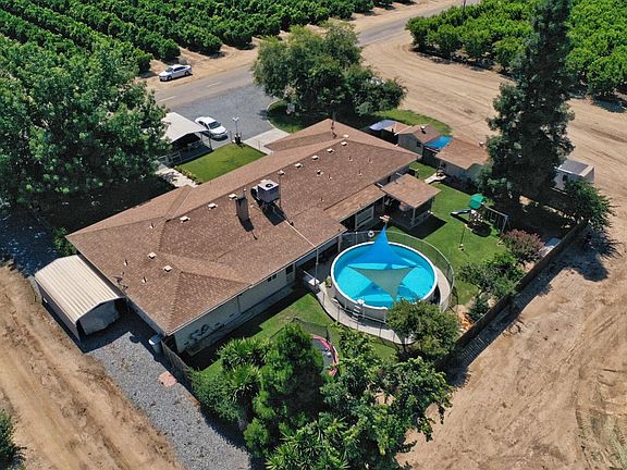 Country Property! 4 bedrooms plus an office or 5th bedroom make this an ideal home for a large family! This home shows pride of ownership. There are lots of upgrades. The kitchen has been updated with solid surface counter tops and new appliances.The master bath area was just remodeled with new flooring, vanity and backsplash. All of the bedrooms are spacious with plenty of closet space.There is a large living room with an attached formal dining area. There is also another informal dining area just off of the kitchen that has a fireplace. Newer Windows and Roof and HVAC were both replaced aprox 14 years ago. The front yard is fenced which is great for children and pets. The backyard has a lovely above ground pool that is fenced. There are 3 Tuff Shed type storage sheds in the back which provide more than enough storage. There is also an attached 2 car garage and two metal carports as well. Very Easy access to Dinuba,Reedley,Kingsburg as well as highway 99 make this the perfect location