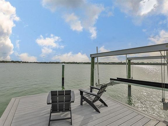 Tucked away at the very end of one of Indian Rocks Beach?s most coveted finger streets, this serene waterfront retreat offers an easterly exposure that welcomes each day with soft light and ever-changing skies. Mornings unfold quietly as boats glide by, dolphins surface in the distance, and the water reflects hues that never quite look the same twice. With nothing but wide-open Intracoastal water behind the home, the sense of space and privacy is rare, enhanced further by a lot that feels refreshingly more expansive than most surrounding properties. Completing the waterfront setting is a private dock equipped with a 13,000-lb boat lift, providing effortless access to the Intracoastal and making days on the water as spontaneous as they are seamless. Inside, the home is filled with natural light and an easy coastal flow. Three generously sized bedrooms and two full baths are thoughtfully arranged, with the primary retreat occupying the entire second floor an inviting escape complete with a private balcony designed for lingering and taking it all in. Downstairs, spacious guest rooms share a beautifully finished bath, while the open living areas connect seamlessly to the outdoors. The interiors feel bright and airy, anchored by a kitchen featuring clean-lined cabinetry, quality appliances, and timeless finishes. Step outside and the experience truly comes alive. The saltwater gunite pool and spa are designed for both relaxation and entertaining, featuring a sun shelf and swim-up table perfectly positioned to overlook your boat resting on the lift. With no neighboring backyards in view only shimmering open water, this backyard feels like a private resort. Just moments away, Kolb Park offers pickleball and tennis, while a short stroll leads to the calm, sandy beaches that define the Indian Rocks lifestyle. Notably, Indian Rocks Beach is one of the few coastal communities that allows short-term rentals, and this property has demonstrated several years of strong rental performance offering flexibility for personal enjoyment while also benefiting from its exceptional location. A rare combination of privacy, open-water frontage, and coastal living - this is a place that invites you to slow down and stay awhile.