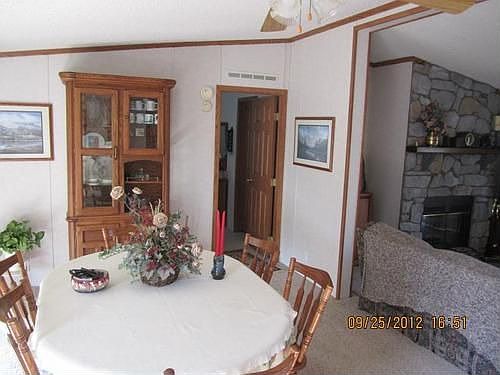 Just outside of town, nice manufactured home on 5.6 acres with 2 storage buildings. Large Kitchen, open Living/Dining Area with fireplace. Newer carpet & vinyl floor coverings.