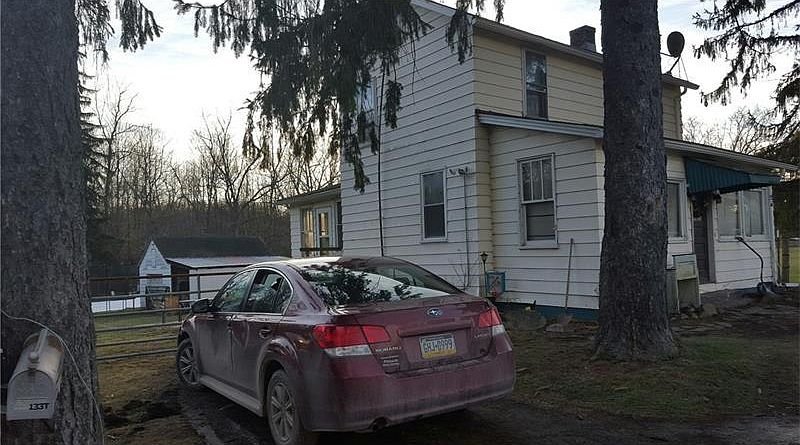 This 2ST Farmhouse features Aluminum exterior, Asphalt roof, Detached Garage with shed, Hard Wood, Vinyl floors, Oil, Forced Air heating, 2 enclosed porches. The 2ST home has 2 bedrooms and 1 full bath and 1.3 fenced level country acres with small stream in rear.