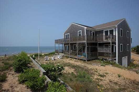 For more information on this property, contact William Raveis Real Estate, Mortgage & Insurance at 1-888-699-8876 or contact@raveis.com. Perched high among the dunes, this Bay front, contemporary style home is situated only steps away from a private beach on Cape Cod Bay. Enjoy the peaceful, quiet, and wonderfully private surroundings along with picture perfect, panoramic views from the wrap around decks on both levels. First floor offers a large, open living room and dining area, surrounded by large windows and French doors to catch the sounds of the surf and smells of being at the beach. Main level also offers a fully equipped kitchen plus 2 bedrooms. Second floor has 3 additional bedrooms, 2 full baths and a second living room. The perfect Cape Cod retreat for even the largest of families, this beach front home also offers investment opportunities and has a strong rental history.