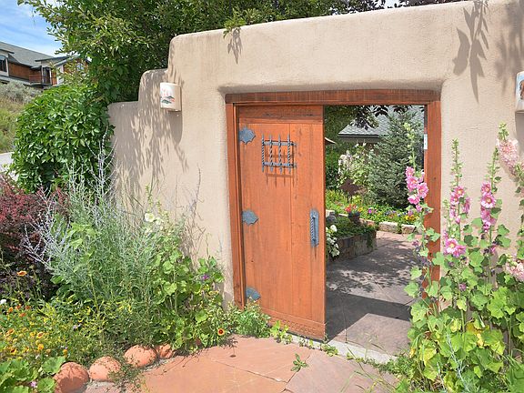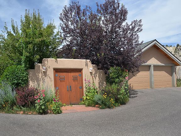 come to your private 1.5 acre oasis. You will love the solitude of your garden courtyard, shaded with a misting system to keep you comfortable outside on hot summer days or warm up by your wood burning fireplace on cool nights. Step inside to realize the home was built to enjoy the incredible panoramic mountain views from every room. Easy to entertain with vaulted ceilings and an open floor-plan from the kitchen with countertop-seating to dining area and living room with a gas fireplace. The main level consists of a large master suite with a 5-piece bath, steam shower and walk-in closet, a second bedroom with ensuite, laundry room and office filled with windows and french doors that open to the back patio. The lower level has a sizable living room with a walkout slider to the back yard and patio, two additional bedrooms, one with an ensuite and two bonus rooms ready for your hobbies or storage. This home has been meticulously maintained with AC, new appliances, new water softener, new hot water storage vessel and new insulated garage doors. Close to BLM for easy access to hiking and mountain biking. Only 1.5 miles from the conveniences of town, an easy bike ride to the River Park, restaurants and shops. Please check out the Matterport 3D Floor-Plan and Video Walkthrough!