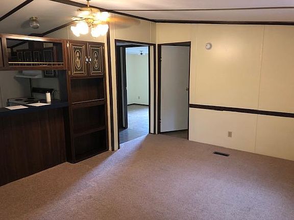 Affordable Doublewide home in Hillsville on 2+ acres. Home features: 960 sq. ft, 3 bedrooms, 2 baths, new carpet and paint, nice front deck, metal roof. Private. There is an old singlewide on property for storage only. Picnic table and swing convey. Located at the end of the state maintained road.