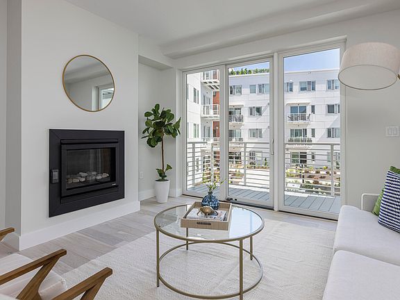 Terrific opportunity! Two bedroom, two bath condo in the most desirable Portland waterfront location! Light-filled, spacious unit boasts 9' ceilings and lovely views of the beautifully landscaped courtyard below. From the open concept living area, expansive glass doors open to an ample deck from which to enjoy the sunshine! The en-suite primary bedroom is well-appointed and comfortable, and the second bedroom is a perfect spot for guests, a home office or a private den. The kitchen features high-end appliances, quartz counters and an expansive island. The open living/dining area is perfect for entertaining, and enjoys a gas fireplace. Wide-plank wood flooring throughout. Two garage parking spaces are offered with this unit - one with its own EV charger. Hobson's Landing is an exemplary community, offering a stunning entrance lobby, concierge, community clubroom, outdoor gathering space with grill, gym, shared Tesla and bikes, and a dog wash. Walk to award-winning restaurants, charming Old Port boutiques and rich, cultural attractions. Enjoy life as it should be!