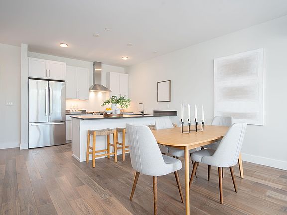 Luxury Living at it's best, unit features hardwood throughout, 9 ft. ceilings, gas fireplace, radiant heat in master bathroom and private deck. Amenities include lobby with concierge, clubroom with a fireplace, deck, and full kitchen, fitness room, dog wash, reservable guest suite, shared Tesla and bikes, and spacious landscaped courtyards. Deeded Garage parking is available at $35000. Take this opportunity to make Hobsons Landing your new home in an iconic waterfront city!