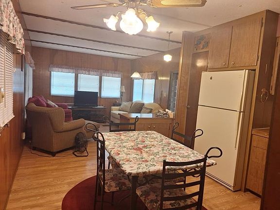Beautiful 1/2 acre fenced corner property across the street from Crescent Lake! Property has a 624sqft manufactured home with an attached 432sqft sunroom and a 520sqft enclosed back porch. Hugh covered parking area large and high enough to park a motorhome. Enclosed 1 car garage( door need to be replaced). You can see some of the lake from the Sunroom. For a small fee a year, you can use the boat ramp across the street. Please call for more info and an appointment to see!