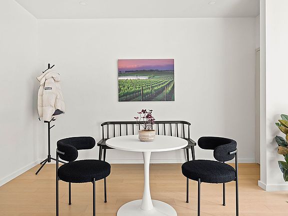 From the moment you enter, you’re greeted by high ceilings, refined finishes, and an open-concept living space that’s perfect for both entertaining and everyday comfort. The chef-inspired kitchen features premium stainless-steel appliances, sleek cabinetry, that seamlessly connects to the spacious dining and living area. Sunlight fills the home, highlighting its beautiful hardwood floors and emphasizing the apartment’s generous layout.