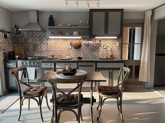 This beautifully styled two-bedroom apartment occupies the lower level of a two-unit cottage just outside the historic village of Kinderhook. Set back from a quiet country road, the home offers privacy, peace, and the best of country living. Enter through a spacious, covered veranda that invites al fresco lounging and sunset gazing over a serene valley and meandering stream. The apartment exudes a Mediterranean flair with its open-concept layout and graceful architectural details, including a grand arch leading into the primary bedroom. The generous kitchen features an electric stove, dishwasher, and sliding glass doors that open to outdoor dining and lounging areas. A large pantry provides excellent storage, and the conveniently located laundry room is accessed directly through the kitchen. The second bedroom is ideal as a guest room or home office. The bathroom is luxuriously spacious, featuring a custom vanity. A pellet stove adds cozy ambiance and efficient winter warmth, helping to keep heating costs low. Tucked away from the world yet minutes from the village, this thoughtfully designed apartment offers a rare combination of charm, comfort, and natural beauty. It's ideal for a single person or a couple. It can be rented unfurnished or lightly furnished for an additional monthly fee. No Pets. Water and waste removal included. Electric not included. Water/Sewer and Waste Removal included. Electric not included.