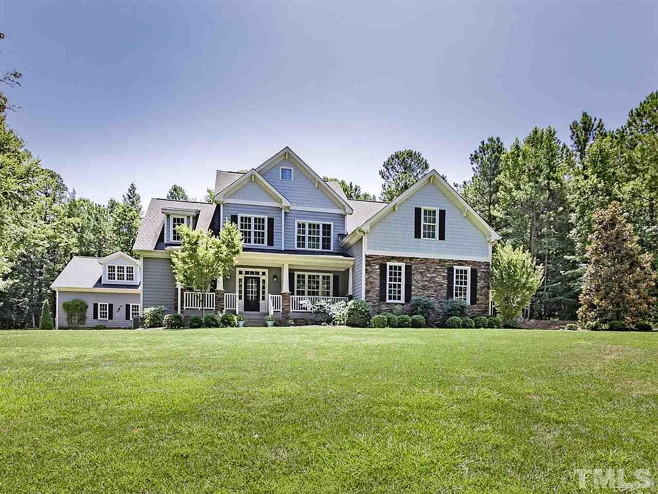Stunning custom built home on 1.7 acres, tucked privately into the desirable Henry's Ridge neighborhood. 4 bed/3 bath hse w/ cathedral ceilings, lots of windows, hardwood floors, gas fireplace in LR, granite in kitchen, surround sound, tankless water heater, trey ceiling in MB. 2nd bdrm on the main level too! Big bonus room upstairs. Other structure is 1.5 story 3+ car garage w/epoxy floors & built in cabinets, workshop/gym with upstairs office space. Amazing location near Jordan Lake, Apex & Chapel Hill.