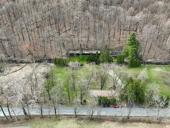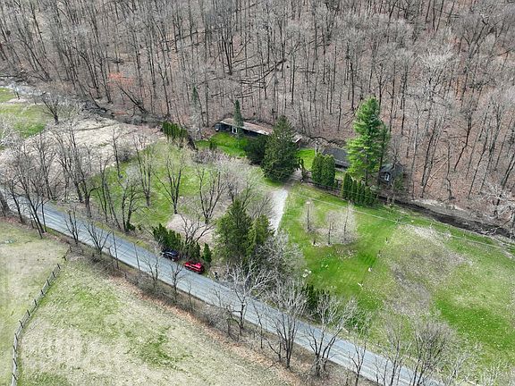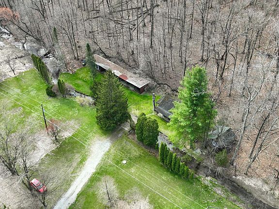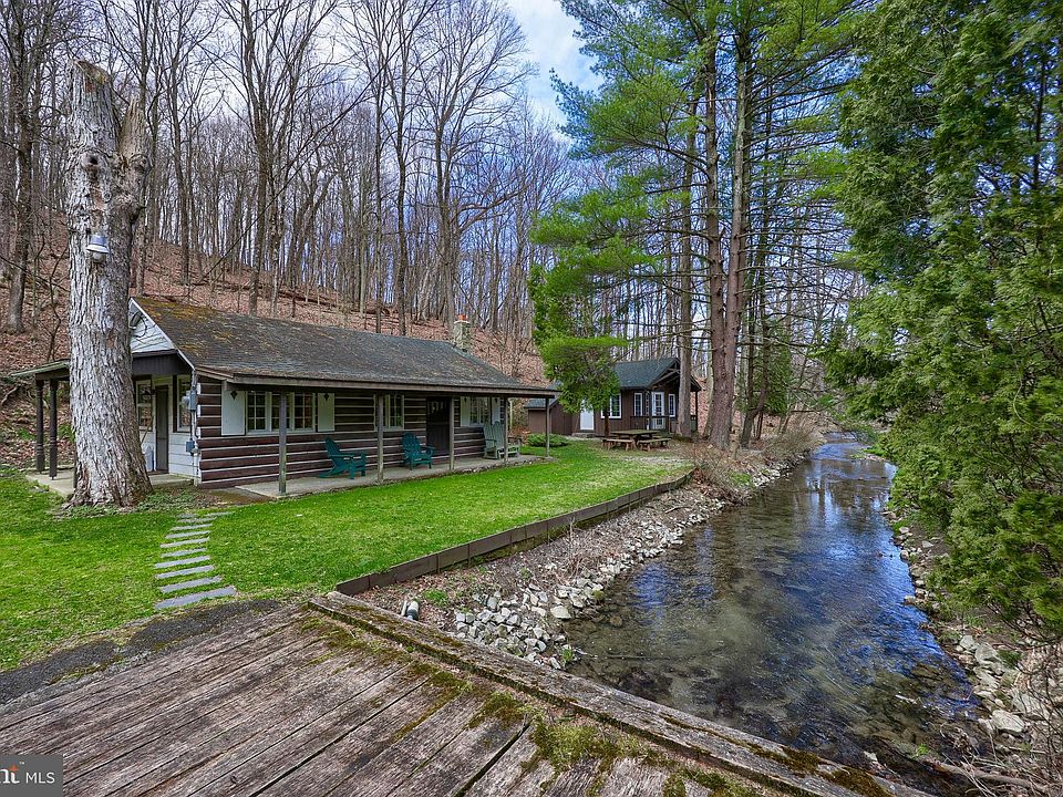 Serene Escape with Creek Tucked away in the peaceful setting of a nature lover’s dream is a spectacularly renovated cabin retreat. Enjoy the sound of flowing creek water out front and the privacy of a wooded backdrop from the rear, all just minutes from Rt. 222 and 78. Across the newly redone wooden bridge, a welcoming facade of wood and a long covered front porch lures you to the main entry. Inside, you’re greeted by the awesome main living space, highlighted by vaulted ceilings with exposed beams and wood walls. It starts with the carpeted living room, which has large front windows, a pellet stove, ceiling fan, and convenient storage space in the ceiling. The nearby dining room continues the aesthetic with the addition of corner cabinetry, large windows, gorgeous blonde pine wood floors that flow to the kitchen, and access to the covered side porch. The dining area opens right up to the kitchen, where great features like wood countertops, a double soapstone sink, and all new cabinetries beautify the space, while electric cooking, a built-in microwave, range, and pantry space make meal prep together more enjoyable. Right off the living space is the relaxing bedroom, which features carpeting, two small closets, and a ceiling fan, as well as easy access to the full bathroom with laminate floor, a tall vanity with granite top, and stall shower. The nearby laundry has a vaulted wood ceiling, mechanicals, and separate entry for added convenience. Create a space that’s all your own in the completely upgraded hobby shed with a covered front porch and cathedral wood ceiling. Take full advantage of all the possibilities thanks to full plumbing, electric, baseboard heat, and a 220 line, as well as a half bathroom with wash bin sink. Invite family and friends over for the ultimate outdoor gathering at your own massive picnic pavilion, complete with electric and a large cooler space to make hosting easy and your guests happy all day and night!