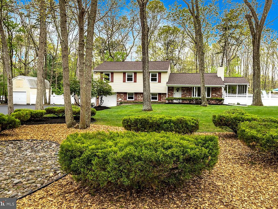 Absolutely beautiful 4 Bedroom and 2.5 Bath split level home in Shamong Township. This home screams pride of ownership as it has been meticulously maintained in and out. The interior of this home offers a large living room with a stone fireplace and a large bay window overlooking the front yard, an open floor plan, neutral decor throughout, a large dining room off the kitchen with a sliding glass door to the porch, an updated kitchen with granite countertops, a tile backsplash, and a window over the sink overlooking the backyard, updated bathrooms, a large family room on the lower level, recessed lighting, a large laundry room/mud room/utility room off the family room with a back door, large bedrooms on the upper level, a large master suite with a fully updated bath with a new vanity with a granite top, a tiled shower with glass doors, and a walk-in closet. The exterior of this home could be in a magazine and starts with a long paved driveway that leads to a 1-car attached garage and an oversized 1-car detached garage, professional landscaping with specimen plantings throughout, a covered front porch with a brick facade, a brand new roof, a newer septic system, a newer well, new heating and air conditioning systems in 2016, a recently updated in-ground salt water pool that is heated with a large brick patio, sprinkler system, a white vinyl fence that surrounds the backyard, a large shed, and a large screened-in porch to enjoy your morning coffee overlooking the peaceful backyard. Don't miss your opportunity to see this wonderful home!