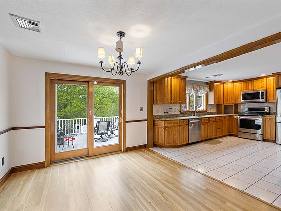 OPEN HOUSE Monday, May 12, 2025 5:30 PM to 6:30 PM Spacious oversized four bedroom split level with lots of natural light and open space.Granite counter open kitchen with three walls of cabinets and stainless steel appliances leads to dining room open to family room with decorative fireplace. Step out to the deck and overlook your spacious backyard. Three spacious bedrooms on this floor plus a large bathroom with double vanity. On lower level, large family room with sliders to the back yard. Fourth bedroom on this level. Separate laundry and garage. Separate garage for car enthusiasts, heated and room for several more cars. Freshly painted and gleaming hardwood floors. Private location with fenced front and backyard for lots of outside activities. New Hastings school district. 2-month notice. tenant to pay for electricity, gas, heat (gas heating in the upper level, and electric in the lower level), hot water (electric), snow removal. detached garage (heated garage) has its own separate electric bill. Upper level has central ac.