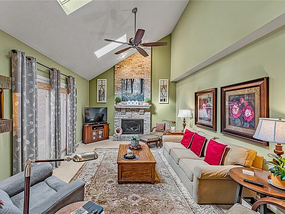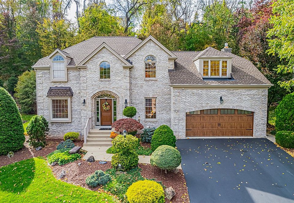Beautiful all-brick home in the sought-after McClelland Farms neighborhood has 4 spacious bedrooms, 2 full and 2 half baths, and a finished basement with bar, bathroom and theater. Updates throughout this move-in ready home! Bright and inviting kitchen features white cabinetry, stainless appliances, granite counter tops, backsplash, overhead and under lighting and plenty of storage space. Master suite has a high ceiling, his-and-her walk-in closets and an enormous master bath with his-and-her sinks, shower and Jacuzzi tub. Wonderful open floor plan with two-story foyer plus two-story family room with floor-to-ceiling brick fireplace, skylights and sliding doors flooding the room with natural light. First floor office with built-ins and French doors. Classic design with hardwood flooring and crown moulding on first level. First floor laundry with chute. Massive curb appeal with professional landscaping, handsome new garage door and new roof in a prime, quiet cul de sac location.