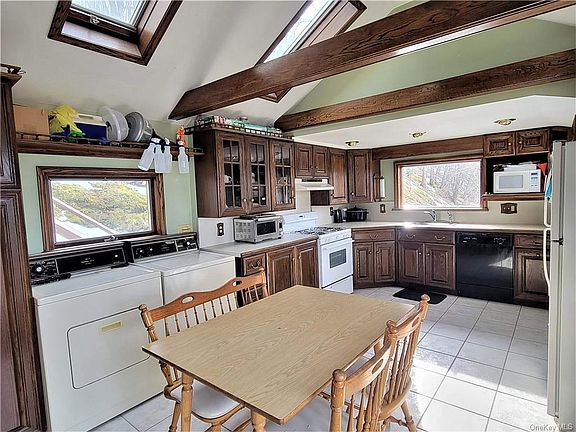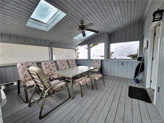 Cute as button and Proudly restored in 1996 this charmer has beautiful HW floors, cathedral ceilings, large eat in kitchen and dining room, deck off MBR, sliders to 2nd deck from kitchen too and large enclosed porch. Lots of cabinets in oak kitchen, tiled bathroom. Mini Split units provide Heat & Air Conditioning. Also has a furnace run on oil which is not used much. Cooking is Propane. Great starter home, rental or airbnb.