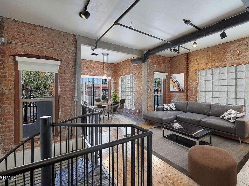 Awesome Historic Gated Urban Loft Style Condominium in the heart of Downtown w/ a Private Garage. This 1929 historic building underwent an award winning redevelopment in 2001. The result was 18 unique & comfortable urban loft style living spaces. Exposed red bricks, spiral duct work and beautiful hardwood & concrete floors, this loft is full of charm & character. This unit features a beautiful spiral steel staircase, updated kitchen and bathrooms, a Private 1 Car Garage & a 1 Car Carport & LOW HOA. The Fillmore Lofts are centrally located & are w/in walking distance to some of Phoenix's hottest venues & attractions; Chase Field, Footprint Center, CityScape, Crescent Ballroom & The Van Buren. A light rail stop is conveniently located around the corner directly across from the Central YMCA.