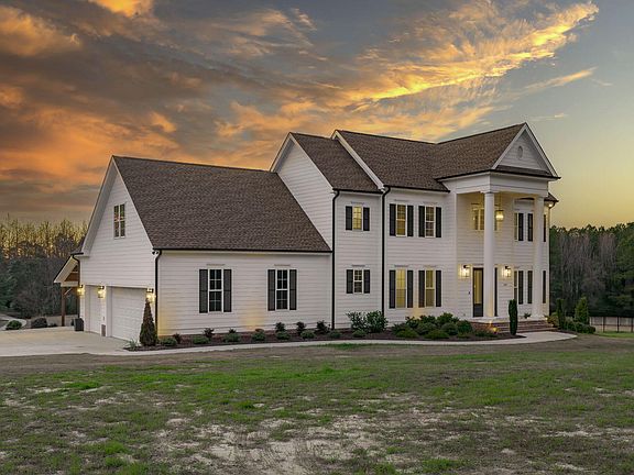 Exceptionally crafted in 2020, this custom-built estate invites comfort and exudes modern elegance in both the indoor and outdoor living spaces! Highlights include a whole house generator, 3-car garage with added carport, and no HOA for less restrictive living. The interior presents crown molding, hardwood floors, oversized baseboards, 10 foot ceilings on first floor, 9 foot ceilings on second floor, formal living room or home office with built ins, formal dining room, mudroom/laundry with storage and utility sink, and gas log fireplace in the family room creating the perfect nostalgic feel. The kitchen is a chef's dream featuring Quartz countertops, gas cooktop, double ovens, and wine bar with rack and fridge. Head to the 2nd level to a bonus loft, guest bath, versatile flex room, and 3 bedrooms, including the owner's suite with WIC, dual vanity sinks, claw foot tub and frameless glass shower. The screened porch overlooks a private, fenced-in, oasis with an expansive patio showcases a heated saltwater pool, built in hot tub, covered pergola with wood burning fireplace and tiered landscape for the perfect green thumb. Sitting on a gorgeous 1.3 acre spread in a private yet convenient location to experience the best of both rural and suburban living with only a 5-minute drive to Downtown Angier and 15 minutes to town amenities in Fuquay Varina and Willow Springs.