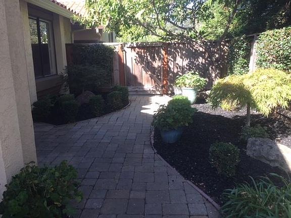 Walnut Creek Beauty: 3 Bedroom, 2.5 Bath, Downstairs Master Bedroom, and Attached 2 Car Garage This light and airy home features a private fenced backyard with large patio for entertaining in a park-like private setting. 1571 sq. ft. of luxurious living space and attached 2 car garage with automatic opener Master bedroom suite is downstairs with French doors leading to an additional private patio and garden area Two upstairs bedrooms (one could be second master) with dual-sink vanity and lots of closet space Comfortable living room with cathedral ceiling, marble-faced gas log fireplace with mantle Central heat and air Beautiful flooring downstairs Karastan carpet upstairs Adura Max flooring in upstairs bathroom Plantation shutters 2 dining areas: formal dining room and dining in kitchen Ceiling fans in 5 rooms All stainless steel appliances in kitchen: microwave, oven, range, sink, wine cooler, French Door LG refrigerator with water and ice maker, and Whirlpool dishwasher Skylights Front Loading Washer and Dryer Lots of extra cabinet storage in garage Includes community pool, spa, and tennis courts Superb location in Main Chance Estates Easy walk to Iron Horse Trail and downtown Walnut Creek Lies between Walnut Creek BART station and Pleasant Hill BART station: 1 mile and easy walk to each Showing by appointment on Saturday, June 18th between 11 and 3. July occupancy, upon credit check and approval. One Year Lease. Move-in: $4150 for First Month's Rent plus Security Deposit of $4150. Water and garbage collection are included in the rent. Landlord pays homeowners' association fees, which include renter use of swimming pool, spa, and tennis courts.