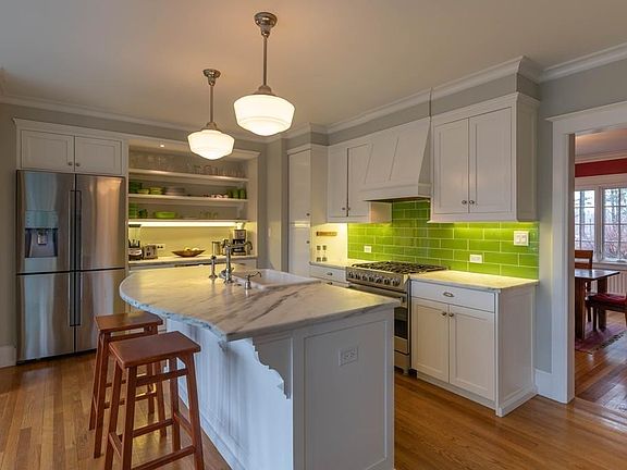 Directly across from Childs Park and near bike path, this 1922 Tudor offers classic detail & a sensational kitchen remodel. The 2014 renovation features a large center island w/marble counters, stainless Viking range, refrigerator, & custom cabinets that continue into a new mudroom. In addition, there is a cozy breakfast nook and separate computer desk. French doors open to bluestone patio w/custom fencing on double landscaped lot w/fruit trees and stone fireplace. Yard is open & sunny with a three-car detached garage w/workshop/potting shed. Beautiful architectural details throughout house such as: crown molding, window seats, built-ins, etc. Gracious living room w/fireplace, & charming 1/2 bath off foyer. Second floor includes 3 bedrooms and full bath. Master has w/en suite office, easily convertible to a full bath. 2 more beds + full bath on 3rd floor. Finished bsmnt w/laundry. Addtnl updates = heating system + radiators, mini splits, full insulation, new windows, electric, etc.
