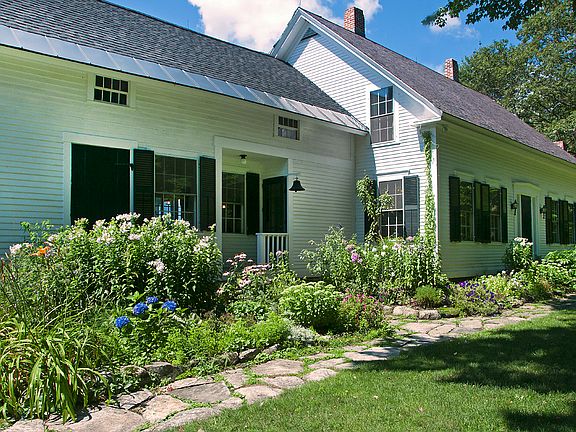 Located in Walpole, New Hampshire, The Kidder Farm is privately situated at the end of a paved road on 34 +/- acres. Comprised of two lots and abutting 106 acres of conserved town land, the residence captures the westerly views of the Vermont mountains over beautifully landscaped lawns, perennial gardens, patios, and decks. The immaculately restored and expanded 3,726-square-foot 1837 Cape offers four bedrooms, three bathrooms and two fireplaces. Marble countertops accent high-end appliances in the kitchen, complete with dining area, fireplace and window seat. A bi-level library with built-in bookcases and a spacious living room with fireplace both have French doors to the rear deck. The luxurious master bedroom is complete with private dressing room, fireplace, deck and expansive bath. The state approved and spring fed swimming/trout pond was conscientiously created in 2002. The charming and secluded Guest Cottage and a 20-stall Barn with an outsized room for hay storage, and three finished rooms.