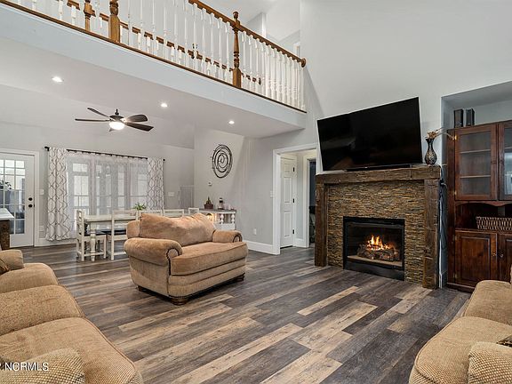 MOVE IN READY! This beautiful 5-bedroom, 3 bath home is situated on an oversized lot in the highly desirable River Landing gated community. Centrally located to North Carolina beaches, Wilmington, Raleigh, & Jacksonville offering something for everyone from world class golf opportunities, tennis facility, river house, walking trails, and much more. The home has been lovely remolded and upgraded in the past 2 years to include new waterproof laminate/wood flooring and matching stainless steel kitchen appliances. Enjoy the spacious kitchen with concrete countertops and mullioned glass cabinet doors. The living room is open with lots of natural light and a breathtaking fireplace that has appealing stonework with beams from the 1800s. The master suite has an en suite bath with a soaker tub, large walk in closet with lights that change colors. Relax and unwind from the master bedroom to the screened in porch. Schedule your showing today and make this your new home!