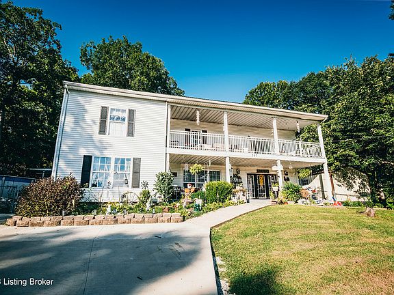 Sitting directly across from Rough River Lake on .55+/-acres is 387 Rough River Resort Rd. This home is ready for a crowd having a whopping 6 bedrooms and 2.5 baths. The spacious kitchen is white & bright and features a new backsplash and floor covering. The massive island is literally the center of attention and provides seating for several plus additional counter-space & storage. The living room down stairs also accommodates seating for a large family. Lounging here is cozy & comfortable near the wood burning fireplace in the cooler weather, The large primary bedroom & bathroom were additions to the main floor for extra privacy and more square footage. The laundry closet shares the space with the full bathroom & is also located on the main floor. Upstairs you'll appreciate a 2nd living area where there is more room for congregating, 5 bedrooms & another full bathroom. The upstairs setup is super ideal for the kids' own quarters or a quiet space from the hustle and bustle of the main floor action for visitors. While some of these rooms are used as actual bedrooms, others are being used as an office, craft/sewing room &/or storage space & therefore they are not photographed.