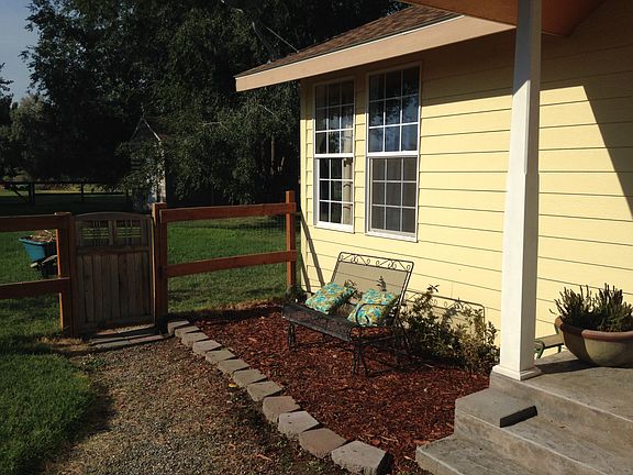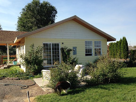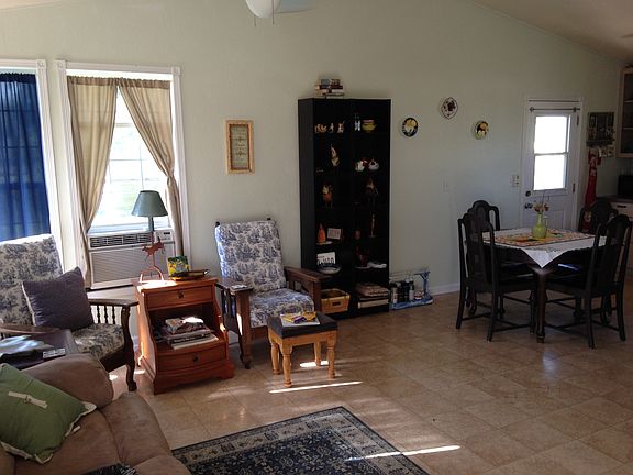 Cute country cottage, 10 years old. Vaulted ceilings, open concept. Ample kitchen with a pull out pantry, slide out baskets, glass front cupboards. All the appliances come with. Laundry area with storage above, washer & dryer included. Roomy bathroom with shower/tub, large vanity, linen storage and built-in hamper. Both bedrooms are a good size and have large closets. There are extra storage areas including a coat closet. The kitchen and living areas both have ceiling fans. There are small, but cute chandeliers in the bathroom and bedrooms and brushed nickel fixtures throughout the rest of the house. There are sliding glass doors in the larger bedroom that lead out to a patio surrounded with rose bushes. There is parking for an RV and an electric hookup. The yard has three sections and the middle section is fenced and very shady with a 10' x 20' shed. The back section has fencing on three sides and a fire pit. This lot is on Blalock Water and costs about $360 a year so you can water to your hearts content to keep the large lawn green in the summer. Comes with an old John Deere riding mower which needs some love.