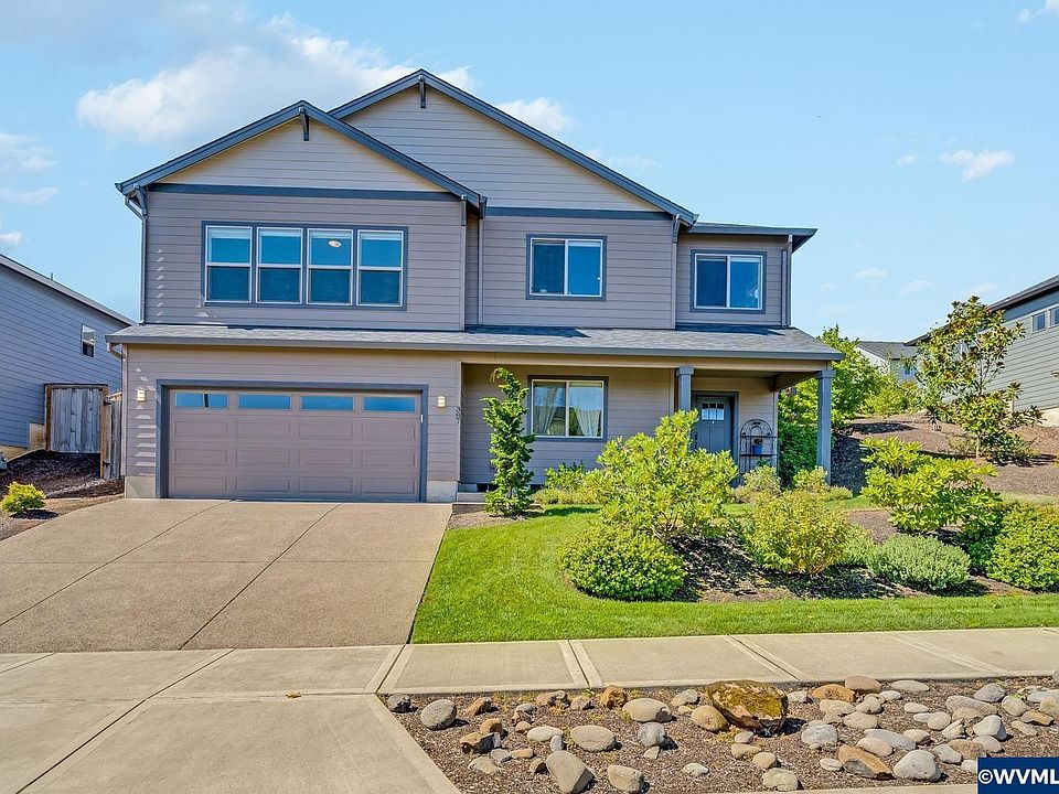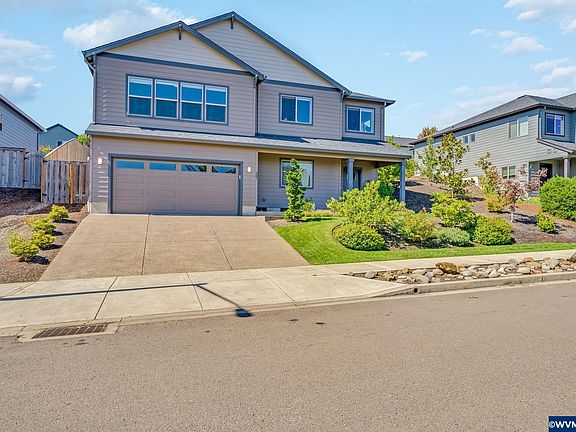 Beautiful home in McMinnville's west hills. Main floor has a spacious entry, bedroom, full bath, laundry rm and garage. Upstairs is one-level living! Enjoy a chef's kitchen with a view! Kitchen has a large island, ample dining space and open to the living room. New carpet throughout for fresh, comfortable feel. Lrge primary suite is waiting for you with an expansive view of the valley and city below! back yard is fully fenced, landscaped& private!