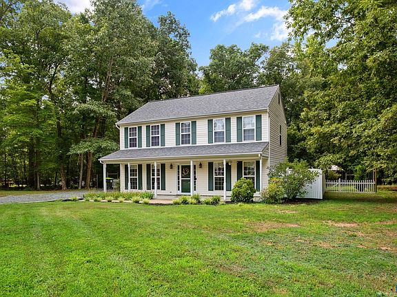 All major systems have been updated including: roof (21), HVAC (18) and water heater (23), plus new shed (22)! No HOA! No water or sewer bills! Minutes to Zion Crossroads and convenient to Charlottesville and Richmond! Nestled in the back of established Mountain View Estates, this two story colonial awaits its new owners! This lovely, well-cared-for home sits on an oversized 1.68 acre lot and is surrounded by mature trees for tons of privacy. Enjoy high speed fiber internet with Firefly! The main level has an open-floor concept with a living room, dining room, breakfast nook, kitchen, half bathroom and home office. The kitchen has wood cabinets and updated kitchen appliances, including a propane cooking stove. New hardwood flooring throughout the first floor. Upstairs you'll find a large master suite featuring hickory hardwood floors, an extra sitting area, walk-in closet and bathroom with separate tub. There are two additional bedrooms and full hall bathroom. The laundry is located on the same floor as the bedrooms for convenience. Enjoy a peaceful evening on your covered front porch or the stamped concrete patio outback overlooking the landscaped backyard! This home has it ALL, it's just missing YOU!