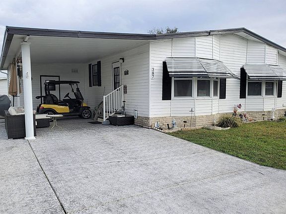 Looking for great double wide in an active, fun, clean, and much sought-after community. This 1988 MERI comes furnished and ready for you to start that new chapter in a wonderful community. Located in the popular 55+ gated community of Swiss Golf and Tennis, Winter Haven, Fl. This is a two bedroom, two bath home, nicely laid out with, front/side screen room with sliding doors to the living room as well as a door of to the backyard. You will find a nice open concept in this home. The open kitchen has a nice breakfast bar with plenty of space to work in and opens to the dining room. The living room is also open to the dining room and kitchen. You will find the newer double pane windows which provides nice light in the living room and dining room. This home comes partially furnished as many items in the home are antiques and will be going with the seller. The master bed, stands and dresser remain in the home along with appliances and a few other items. We can provide a detailed list. You will find the washer and dryer conveniently located just steps out the door to the covered utility shed. The is priced at $47,000 with the new golf cart with several upgrades, or $42,000 without the golf cart. You can easily make this home your own. Call today for an appointment. 2021 Lot lease is $505 includes all the amenities of Swiss Golf and Tennis and Hidden Golf Club. Swiss Golf & Tennis Club is located on beautiful Lake Henry with opportunities to fish, go boating & enjoy the gorgeous sunsets. It is a very active 55+ land-lease Golf community. There are 2 clubhouses, one that has just completed a million dollar renovation, 2 pools, Hot tubs, an onsite Restaurant and Pub, Gym, card room, billiards room, library, pro shop for the 18-hole executive Golf course, tennis, shuffleboard, pickle ball, bocce ball and the list goes on. There is a strong entertainment committee which provides monthly shows, dances, dinners, tournaments and bingo. Winter Haven, FL, is centrally located between both the Gulf and the East Coast beaches (1 to 1 1/2 hours away). The Orlando Airport is only 45 minutes away and so are many sports events, such as the Lakeland training camp. Disney World, Universal Studios and Legoland are all within 40-minute drive. There is a never-ending array of outlet malls for shopping and dining to suit any taste/budget. So, whatever you like to do for entertainment, Central Florida and Swiss Golf and Tennis is the place to live. Property address is 387 Tennis, Winter Haven, FL 33881. Lot rent for 2021 $505.00