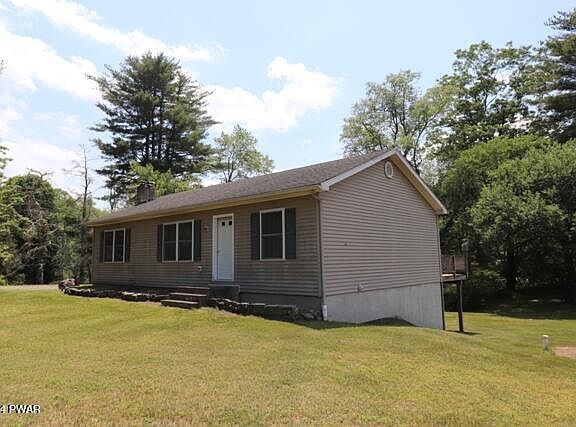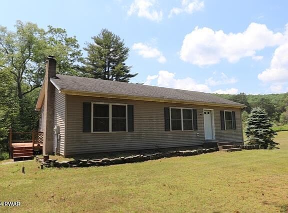 Large Ranch style home on 2.25 acres for sale, located between Hawley and White Mills. No HOA and no dues. The home features 3 bedrooms, 2 baths, primary bedroom with primary bath, large kitchen and living rooms, dining area leading to large rear decking, and full unfinished walkout basement. Oil hot water baseboard heating and coal stove in basement. Large yard is perfect for entertaining! The view from the back deck is just lots of mother nature and farmers corn field. Tons of potential to build a garage or other structures.